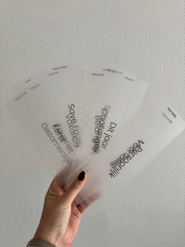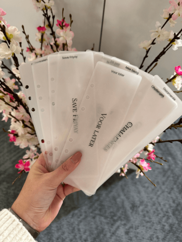 Je kunt zo klein beginnen als je wilt. Het belangrijkste is om duidelijk te hebben wat je inkomen is en je vaste lasten zijn en wat je daarna over hebt om te verdelen over verschillende mapjes. Schrijf voor jezelf op in welke categorieën je het wilt verdelen. Je zou het beste kunnen starten met de complete starterset, deze zou je natuurlijk nog kunnen uitbreiden.